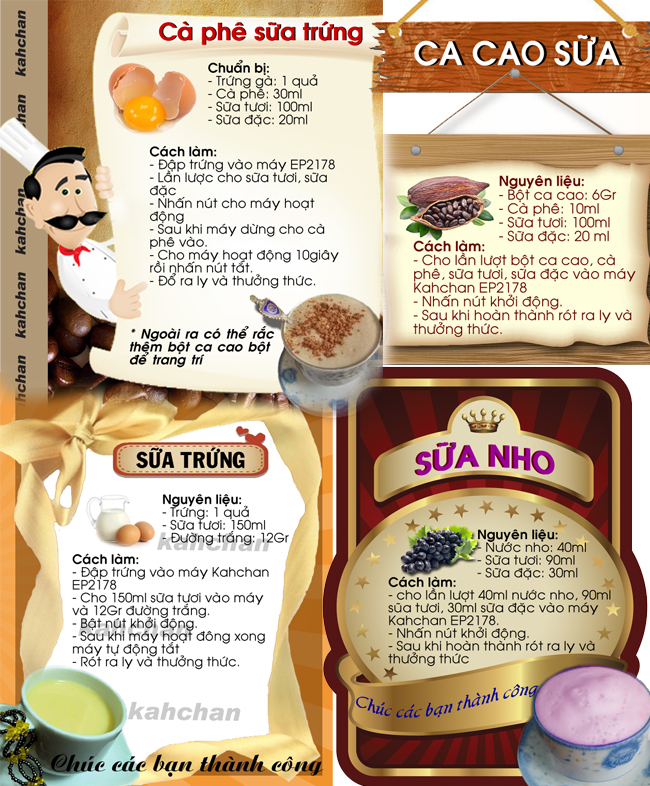 tin không?❤máy nhỏ mà làm được nhiều thứ❤pha trà sũa,pha cacao,pha cà phê cappuccino,pha chế sinh to,pha sữa ông Thọ,đánh sữa tạo bọt ... vui lòng xem chi tiết tại https://www.youtube.com/watch?v=D6mt0VvXJh4 ❤❤ Một sản phẩm thông minh, nhỏ gọn phù hợp với tất cả mọi thành viên trong gia đình. thỏa sức sáng tạo các loại thức uống nóng, lạnh theo khẩu vị của từng thành viên trong gia đình. pha chế nhiều loại thức uống thơm ngon bổ dưỡng, hợp vệ sinh, tiết kiệm chi phí, đảm bảo sức khỏe gia đình bạn. Kahchan EP2178 là chiếc máy đa năng, chức năng chính dùng để đánh sữa ,tạo bọt, làm nóng sữa cho việc pha chế các loại thức uống nóng và lạnh: như cà phê sũa nống và cà phê sữa đá, cacao sữa nóng và cacao sữa lạnh, cà phê sữa trứng và cà sữa sinh tò, trà sữa thái ,trà sữa matcha, trà sữa lipton….chỉ với một chiếc máy pha đa nang kahchan EP2178 bạn cò thể đem quán cafe về nhà máy pha đa nang kahchan EP2178 thao tắc đơn giản,bấm nút một lần thì có thể pha các loài thức uống nóng, bâm 3 lần liên tục thì cò thể pha thức uống lạnh , máy này có chế độ khống chế nhiệt độ khoảng 65-75độ như vảy mới đảm bảo chất dinh dưỡng của sữa 、cacao...không bị cháy, đáy chính là nguyên nhân nhiều quán cafe mua máy đánh sữa kahchan EP2178 để pha chế thức uống cacao và trà sữa,chỉ với một phút ,bạn sẽ được một ly cacao hoạc trà sữa tươi mẻ dinh dương pha chế ngay khi order