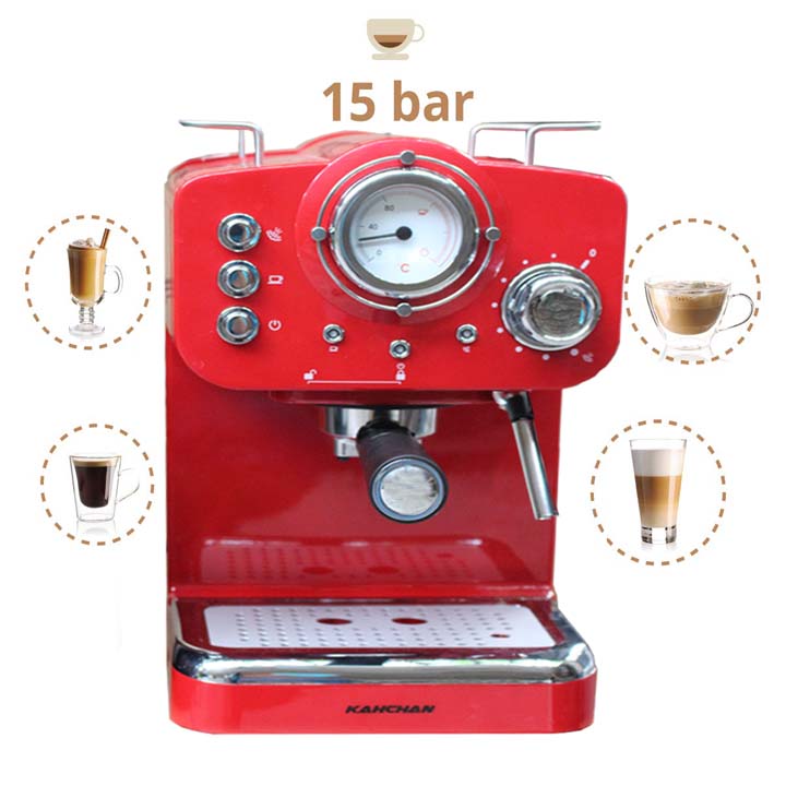 Máy pha cafe espresso Kahchan là thiết bị hoàn hảo kết hợp với máy xay cafe chuyên nghiệp pha chế các loại thức uống espresso theo kiểu Ý và cũng là sản phẩm lý tưởng cho tất cả barista để tận hưởng nghệ thuật cà phê capuchino và cafe latte. Chiếc máy pha cafe espresso Kahchan có đầy đủ chức năng cho cả pha cà phê espresso và đánh sữa tạo bọt latte và cho cả capuchino. Với một chiếc đồng hồ phía trên của máy có thể cho barista dễ sẵn sàng nắm rõ quá trình pha chế theo chỉ thị nhiệt độ cho từng ly cà phê , để đảm bảo từng ly cà phê có nhiệt độ chuẩn xác và bên cạnh đó hệ thống thông minh luôn giữ áp suất ổn định cho đánh sữa tạo bọt để chất lượng ly cà phê tạo ra hương vị đậm đặc hoàn hảo, không bị chua không bị gắc . Máy pha cafe espresso Kahchan sẽ giúp bạn gỡ bỏ những lỗi của máy pha espresso truyền thống và có những nút thao tác riêng biệt đảm bảo quá trình pha chế luôn suông sẽ và vui vẻ. Máy pha cafe espresso Kahchan là thiết bị tinh tế và lựa chọn thông minh cho bước đầu khởi nghiệp quán cà phê. Máy pha cafe espresso thiết kế tinh sảo, đa màu lựa chọn, là sản phẩm tiếp thị phù hợp với mọi gian quán. Một điều đặc biết với quá là máy có thể lựa chọn pha 1 lúc 1 cup hoặc 2 cup tiện lợi cho kinh doanh trong giờ cao điểm.Với công suất mạnh mẽ, quá trình pha chế chỉ cần 10 -25 giây,Giúp các bạn Bartender dễ dàng sử dụng, luôn đồng hành trong mọi quá trình pha chế. thông số chung: 220-240V, 1100W, 15Bar, Bình Nước ,1.5 Liter