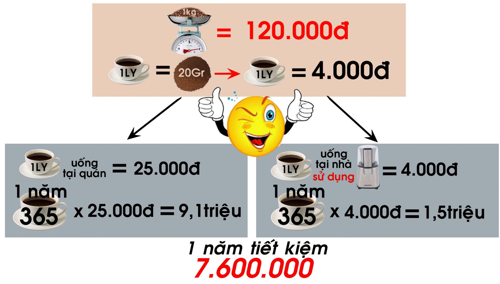Tự xay cà phê tại nhà, bạn có thể yên tâm rằng cà phê đang uống là nguyên chất, không tẩm hương liệu hay các loại hóa chất gây ung thư. Bên cạnh đó việc xay cà phê và thưởng thức tại nhà còn có thể giúp bạn tiết kiệm tiền bạc, công sức và thời gian so với việc ra quán.![]()