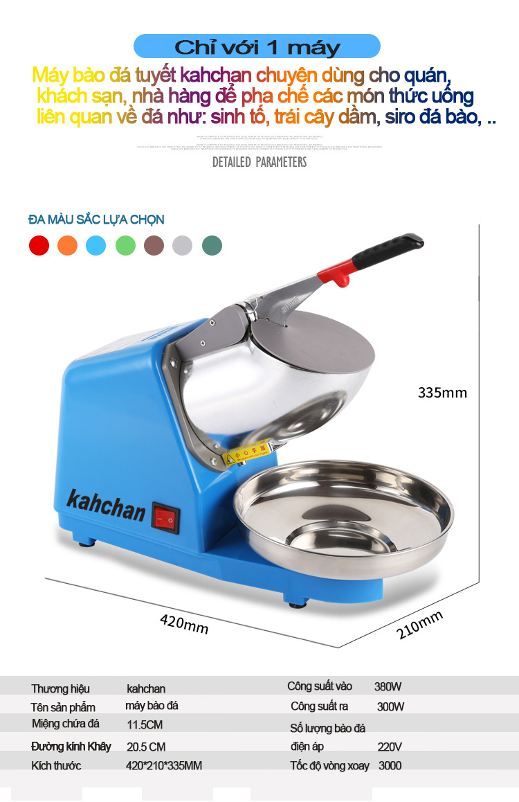 Máy bào đá tuyết kahchan là một thiết kế nâng cấp đời thứ 2 của các dòng máy bào đá truyền thống. Máy bào đá tuyết kahchan là sản phẩm của công nghệ hiện đại, bào đá cực mịn thành tuyết, nhanh chóng, 100kg đá được bào thành tuyết chỉ trong 1 giờ. Bở vì máy có những đặc trưng sau đây: