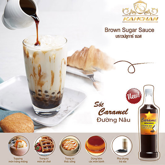 Syrup Đường Đen (Syrup Đường Nâu) - Caramel Brown Sugar Sauce Định lượng: chai 5kg. Thùng 4 chai. Sốt syrup từ nguyên chất đường nâu. Vị thanh ngọt, mùi thơm, thích hợp cho chế biến /dùng kèm các món tráng miệng, trà sữa, topping trang trí thức uống, bánh, kem, món tráng miệng... - Đảm bảo luôn là hương vị thơm ngon khác biệt hẵn, chuẩn vị xứ Đài Loạn, không bị khét, hắc, hay quá nặng mùi bí đao, hoặc nặng mùi cafe, hoặc mùi quá nồng... như các dòng syrup thông thường. Brown Sugar Caramel Sauce - original Taste from Taiwan!